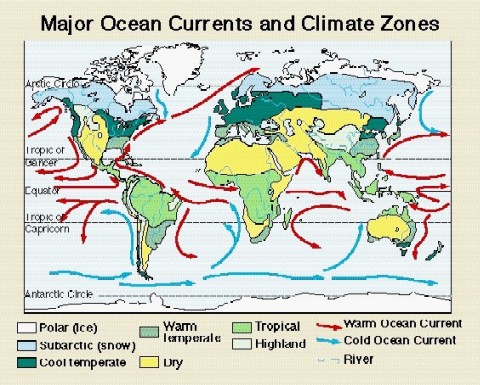 Zone (20°-60°) --> create eastern boundary currents = cold water