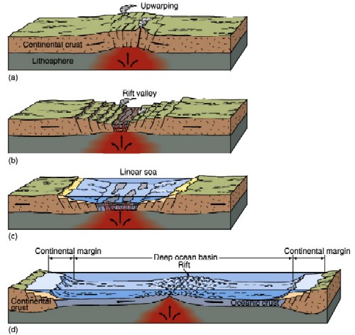 movement of continental plates, still continuously enlarging