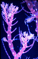 ![]() ![]() Red algae may be filamentous (left; nuclei stained, fluorescence microscopy) or thallous (right, Porphyra sp.) Green algae can also be filamentous (left, Acrosiphonia) or form thalli (right, Ulva). Take a look at photographs of kelp forests and much more marine life by clicking here -- and more photographs, sorted according to species and groups, are found here Protocols for the monitoring of macroalgae can be found here