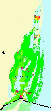 ![]() ![]() ![]() Seagrass damage by prop scars, Dade County, FL: green = little affected, yellow = moderately affected, re = strongly affected