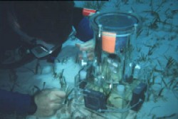 plexiglas bells are put over seaweed; oxygen probes within the chambers