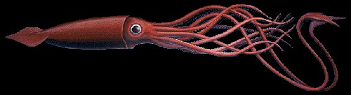 squid Archetheutis dux grows up to 18 m in length. Only dead, washed-up