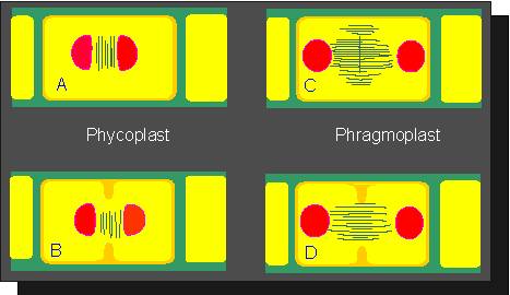 in mitosis (Charaphyceans and in higher plants)
