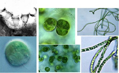 (several round cells in a common miclage, rare), and the filamentous Klebsormidium