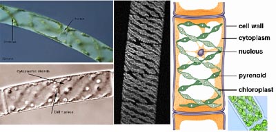 high light as in the lower filament; Right: filamentous Zygnematales can