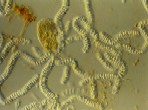 reproductive cells; right: spermatozoids in long strings