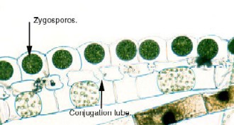 Conjugation stages in Spirogyra; only one protoplast