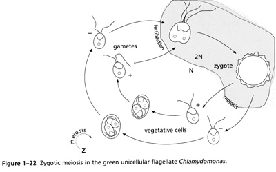 in haploid state, with meiosis upon germination of the zygote (zygotic