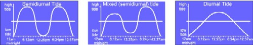 on the orbital position of sun and moon and ocean region, mixed tides occur.