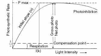 = maximum production; depends on dark reaction (unlimited growth) or limiting