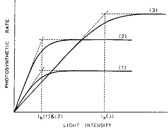 of (1) and (2) as compared to (3) reveals them as shade-adapted species.